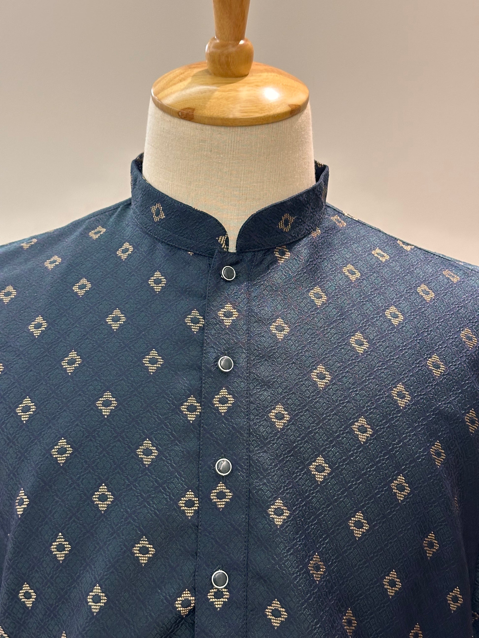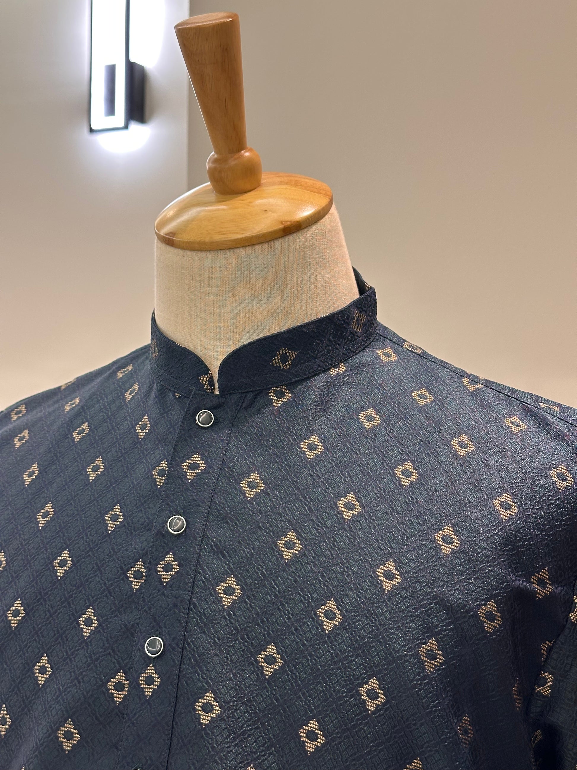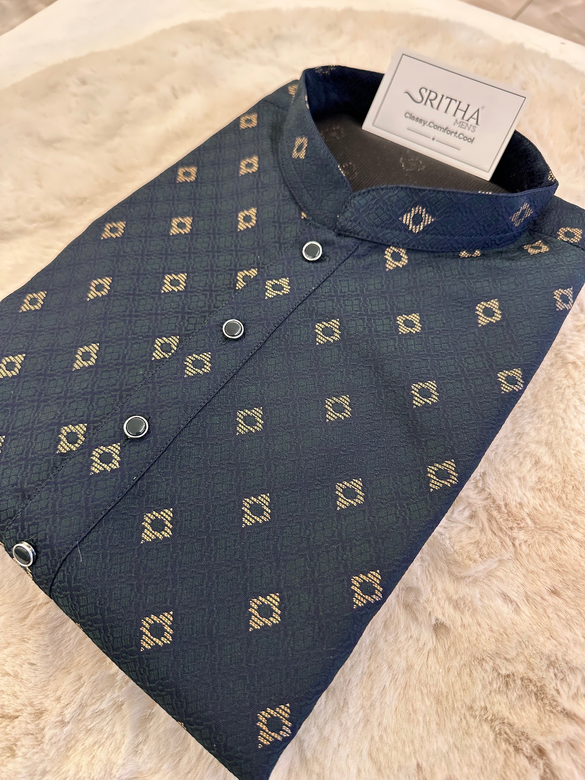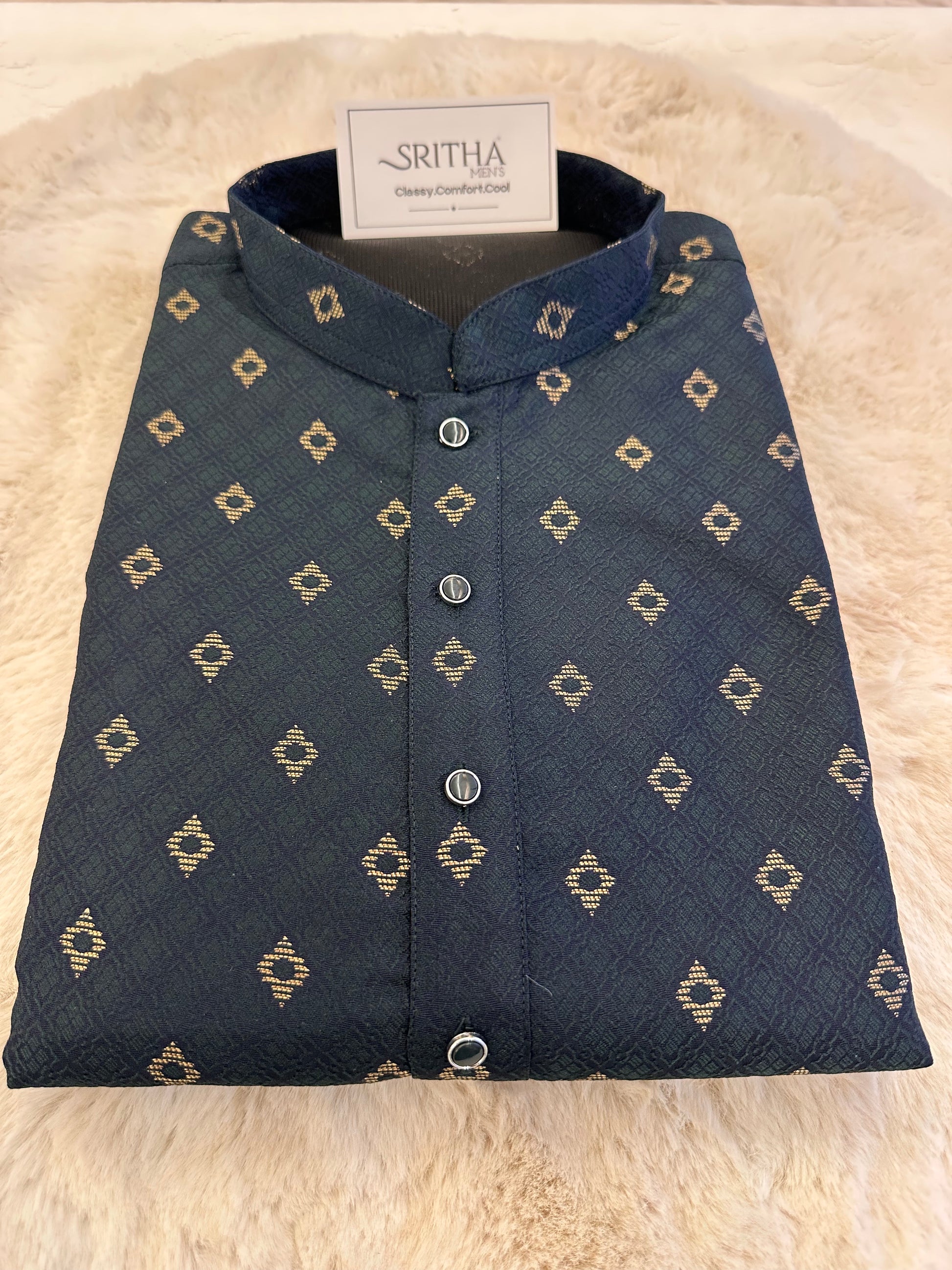 SM0126-02-05 Bottle Green Jacquard Silk Blend Kurta Set
