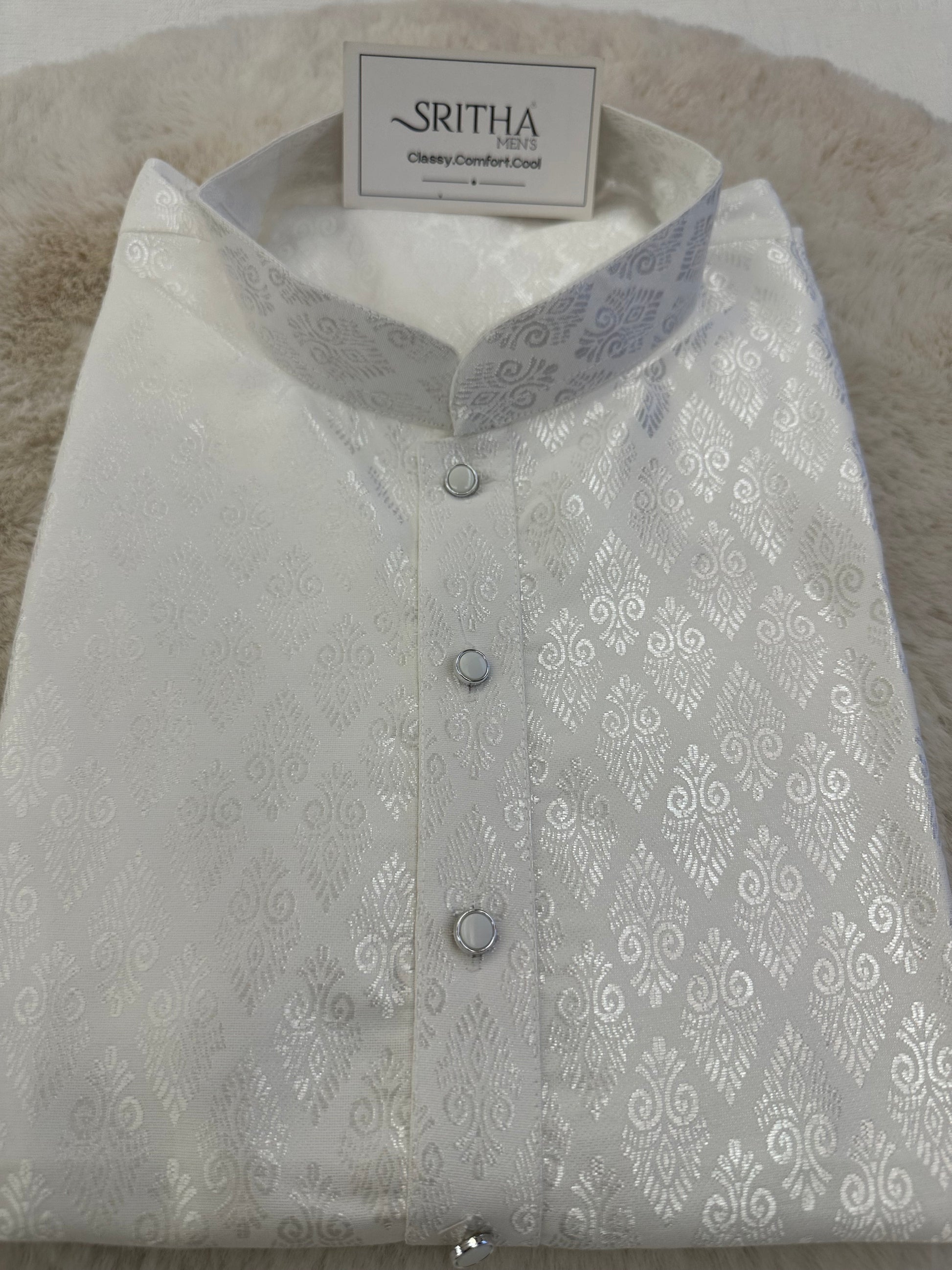 SM0525-02-21 White & Silver Soft Silk Blend Kurta Set