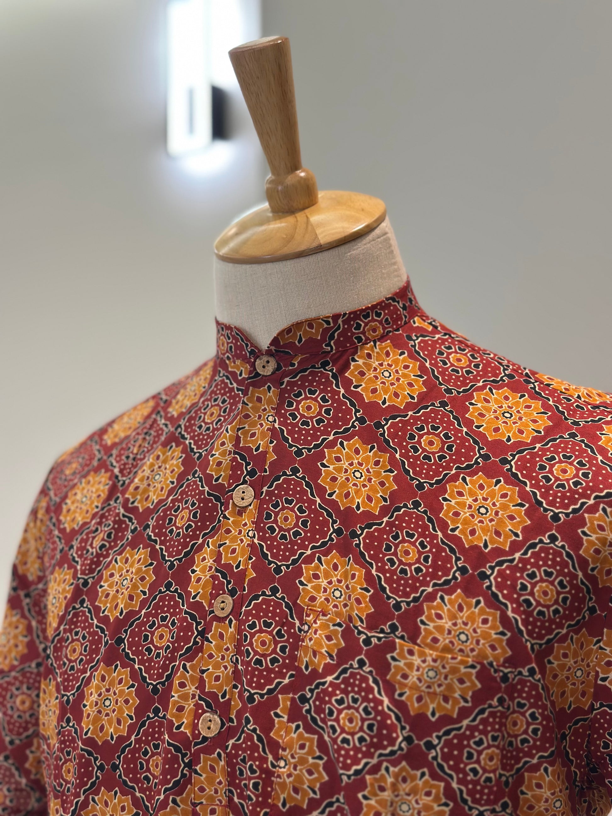 SM0724/25-08-06 Red Orange Short Cotton Kurta