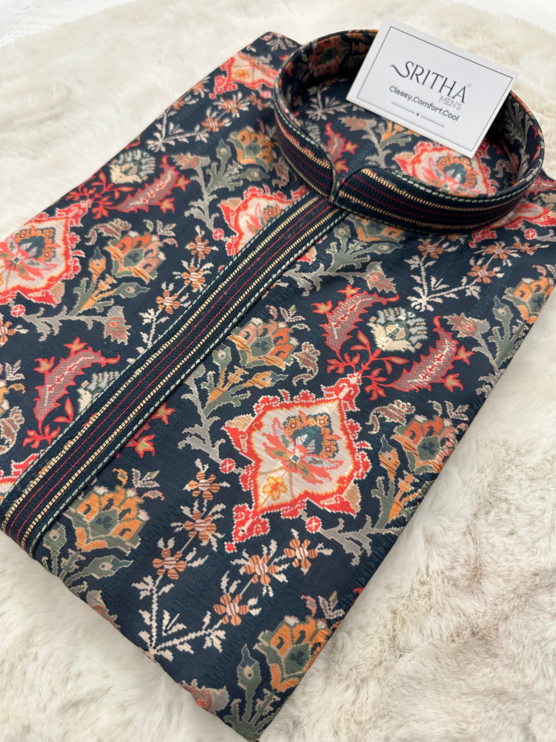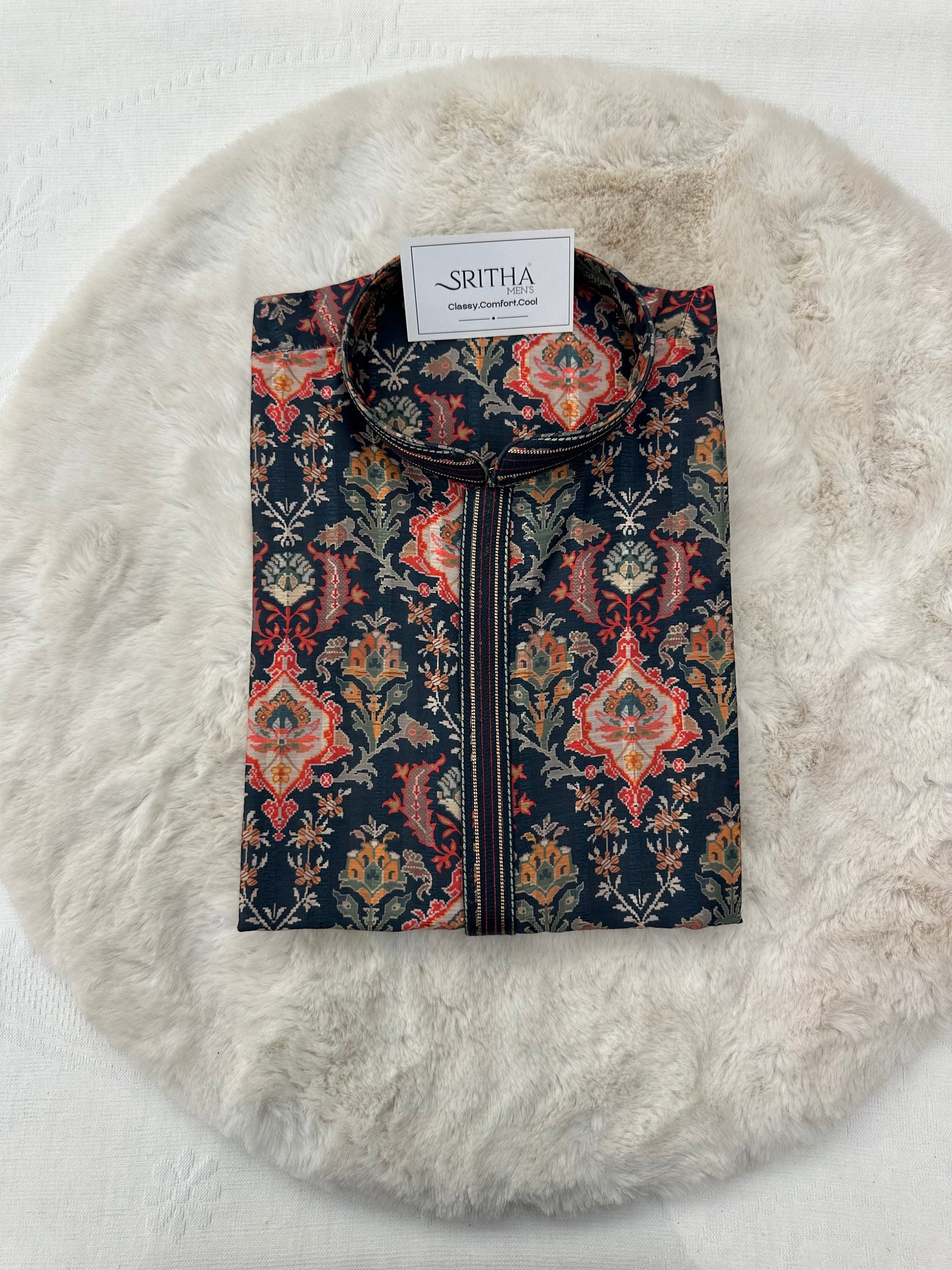 SM0925-01-06 Grey Green Soft Cotton Silk Kurta
