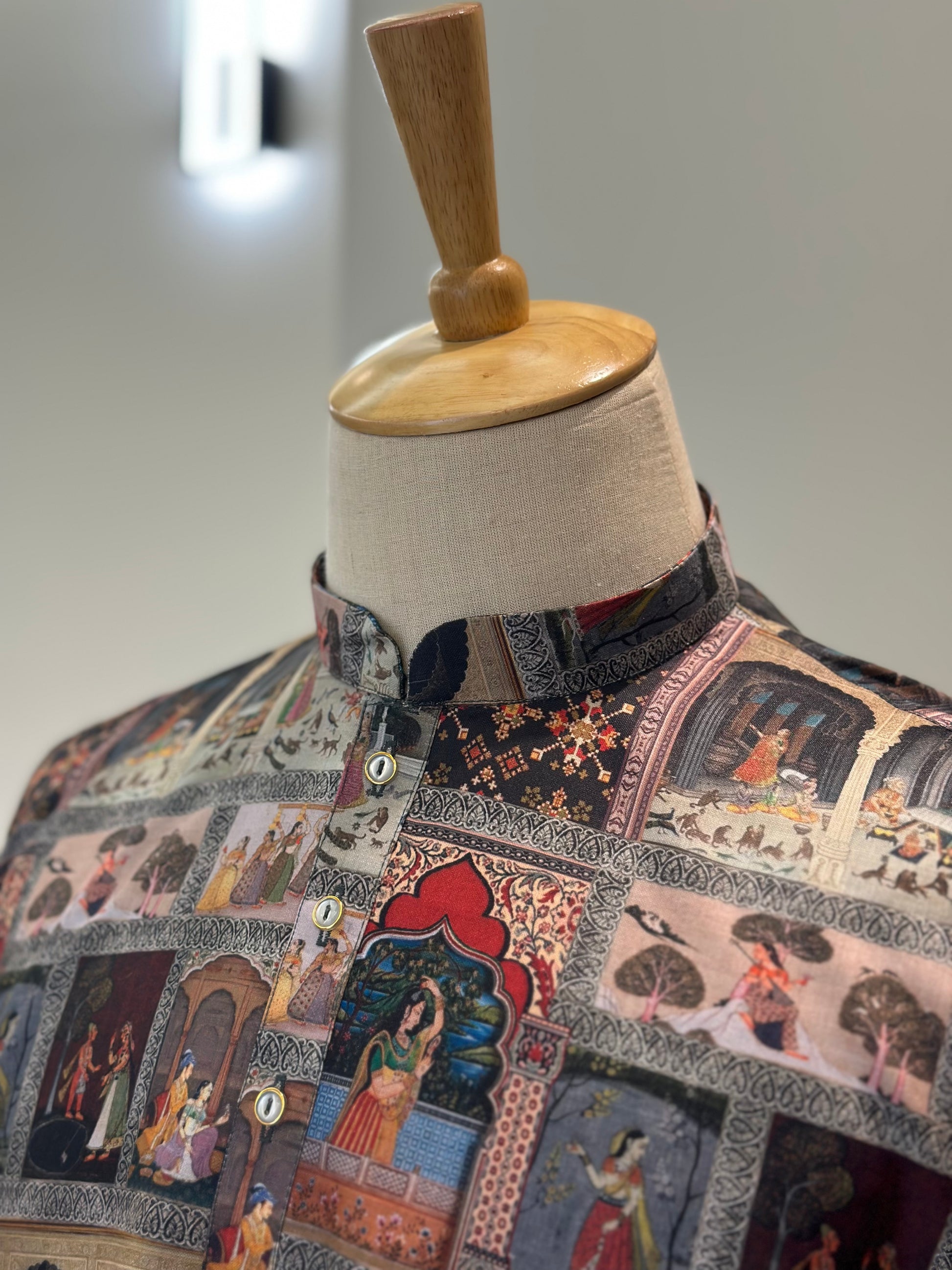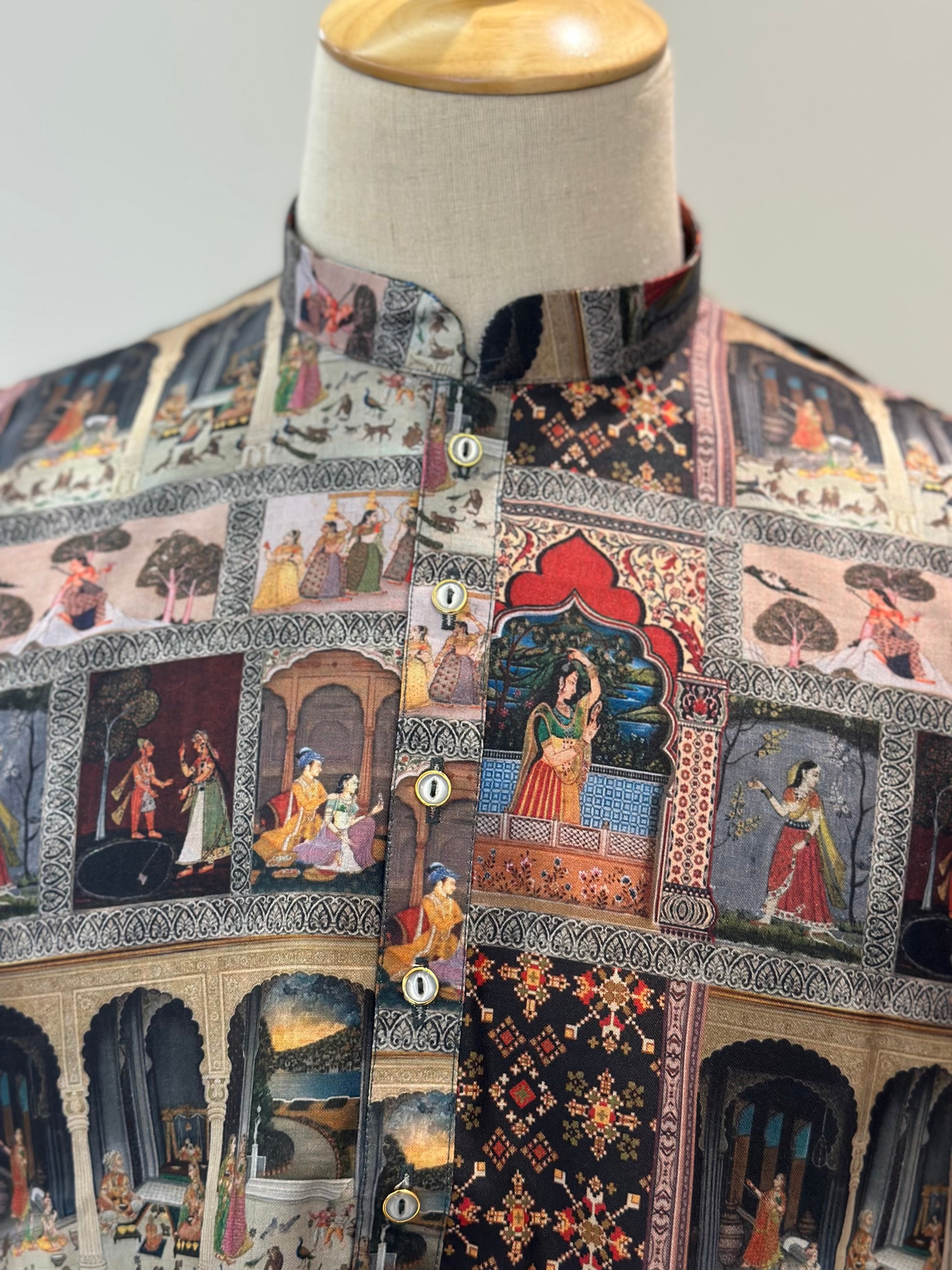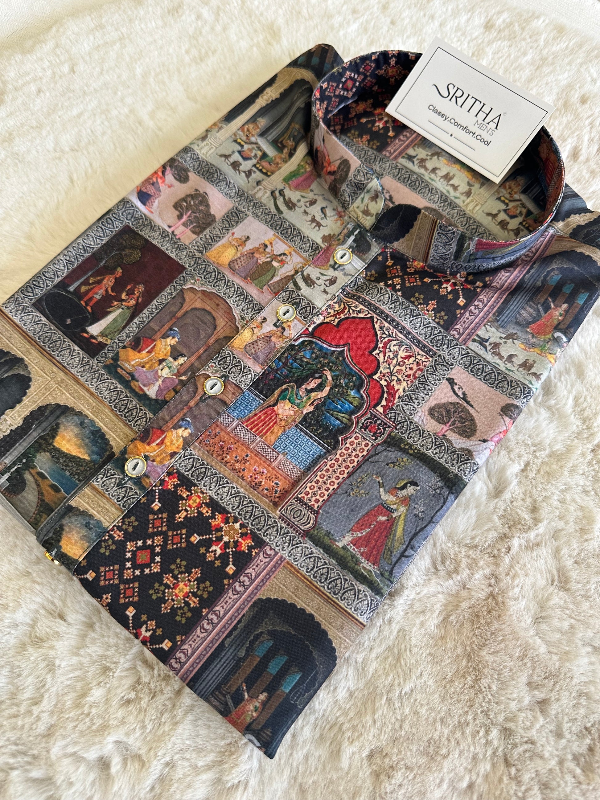 SM0925-01-17 Black Tribe Print Cotton Kurta