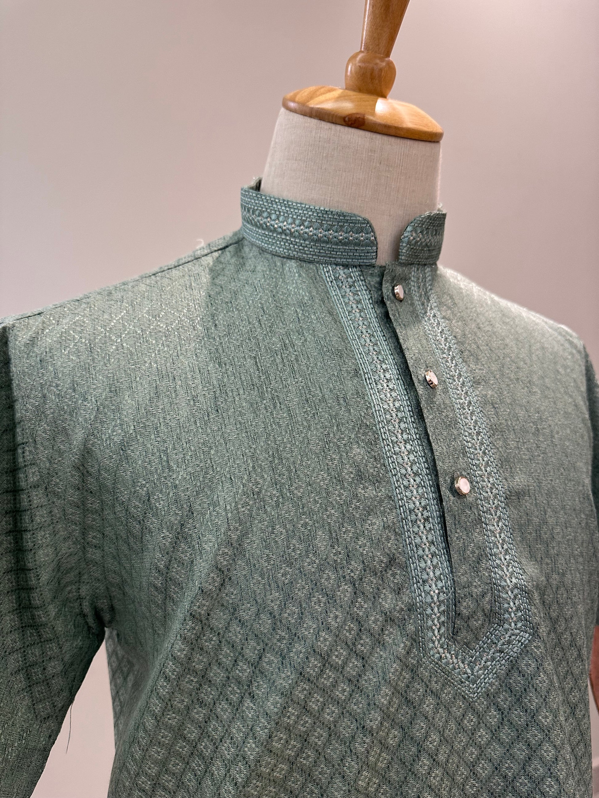 SM0126-18-02 Steel Green Short Cotton Blend Kurta