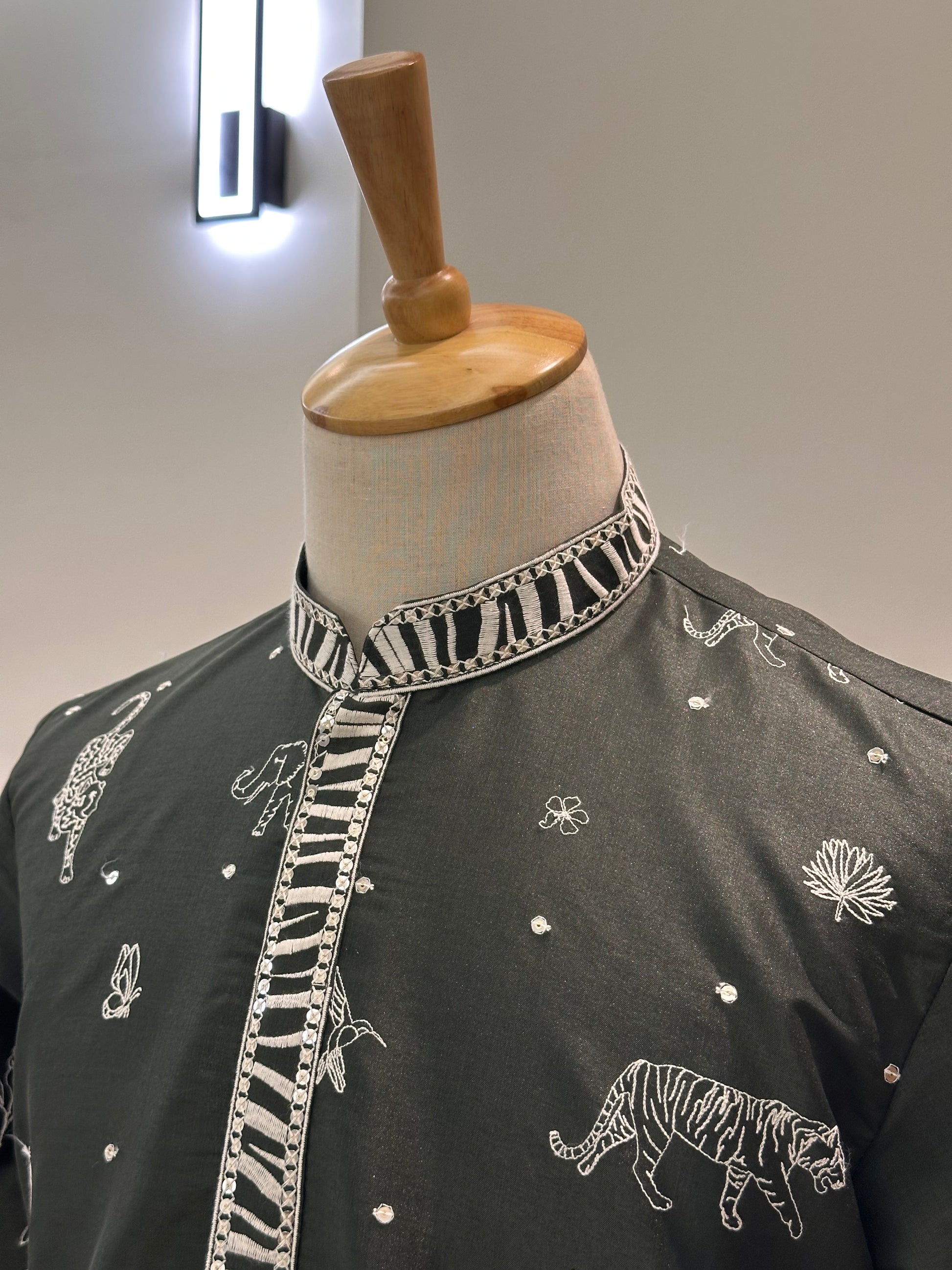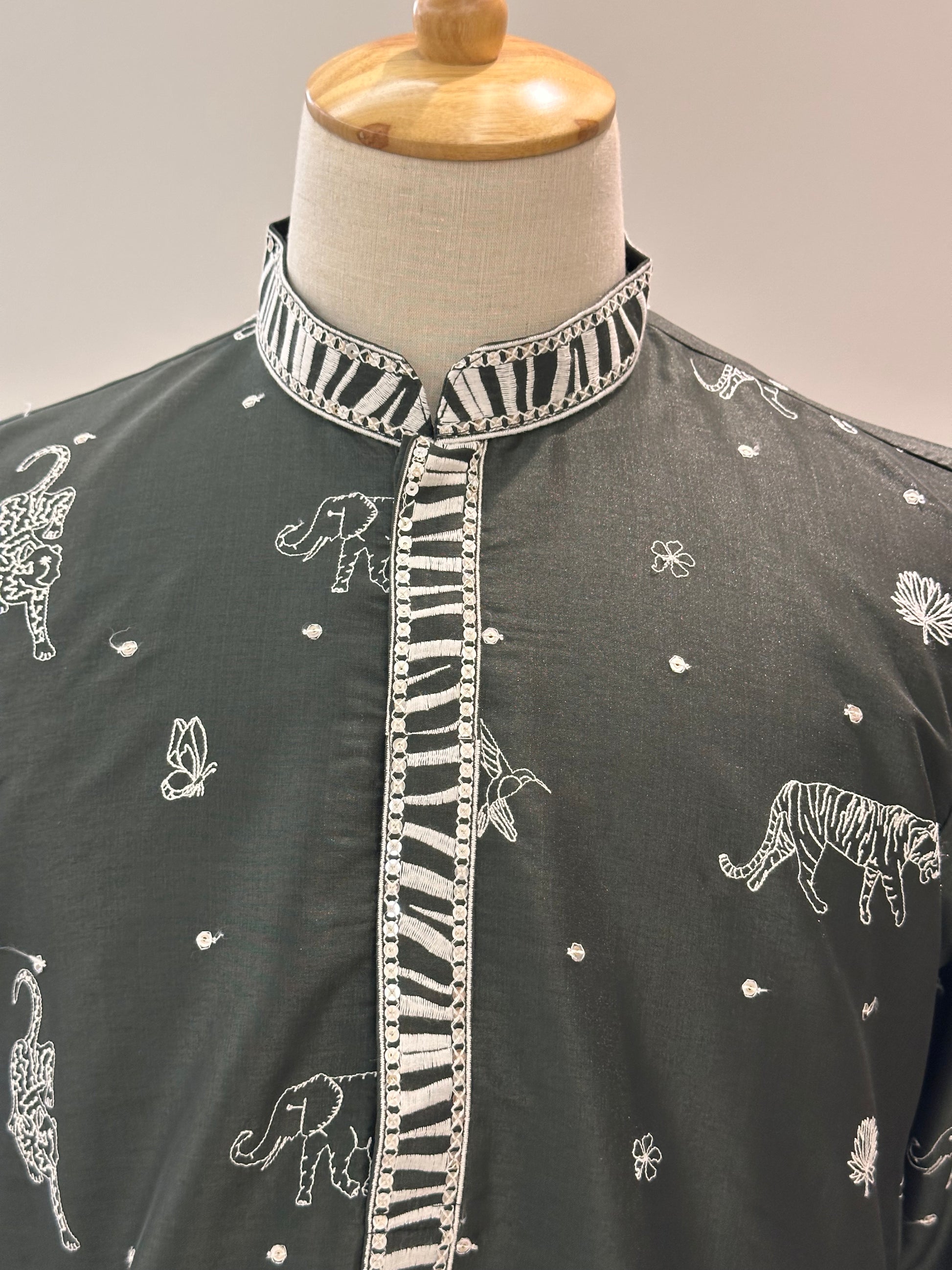 SM1125-02-07 Olive Green with Thread work Cotton Blend Kurta Set