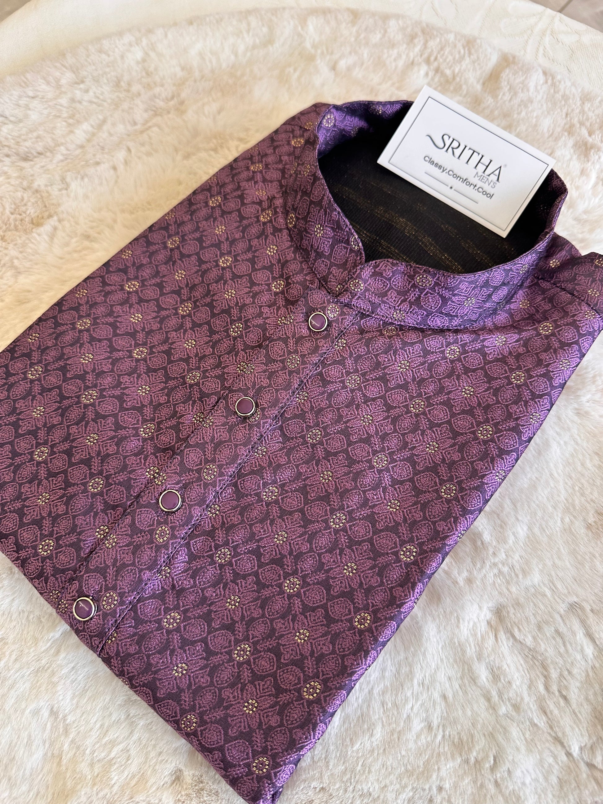 SM1125-02-11 Purple & Gold Jacquard Silk with Lining Kurta Set