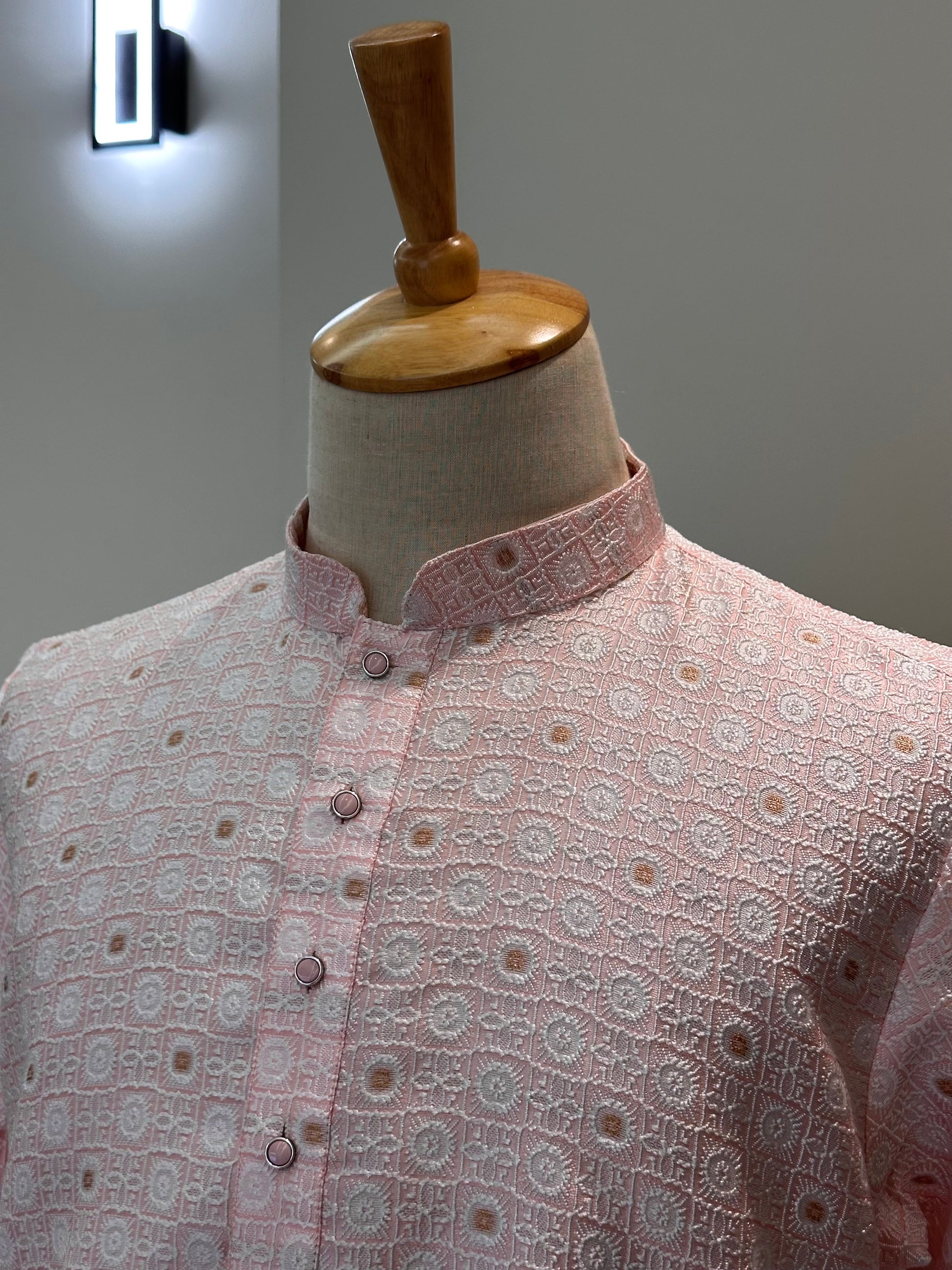 SM1125-02-17 Pastel Pink & White Jacquard Kurta Set