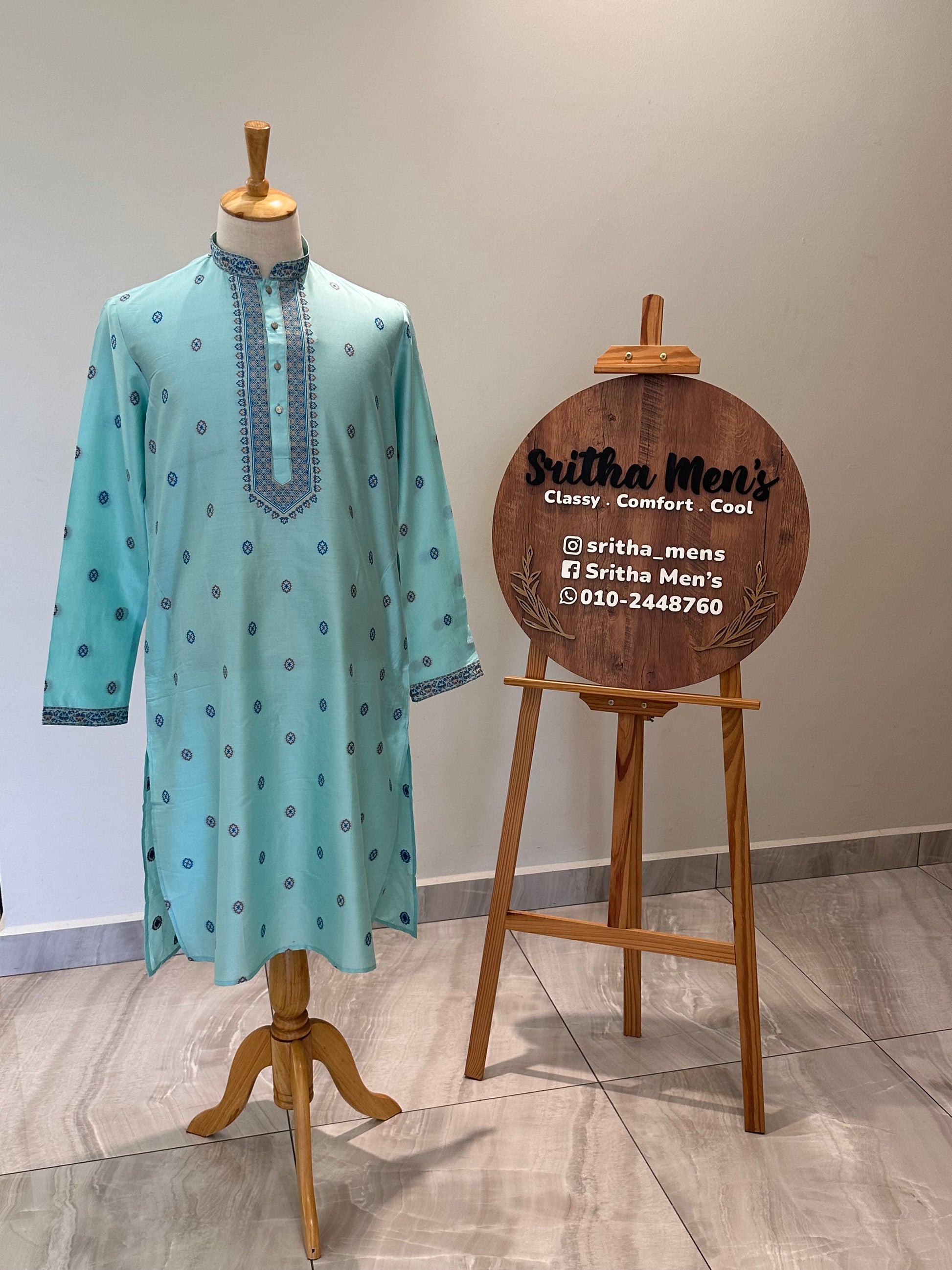 SM1125-06-02 Turquoise Soft Silk & Woven Design Kurta Set