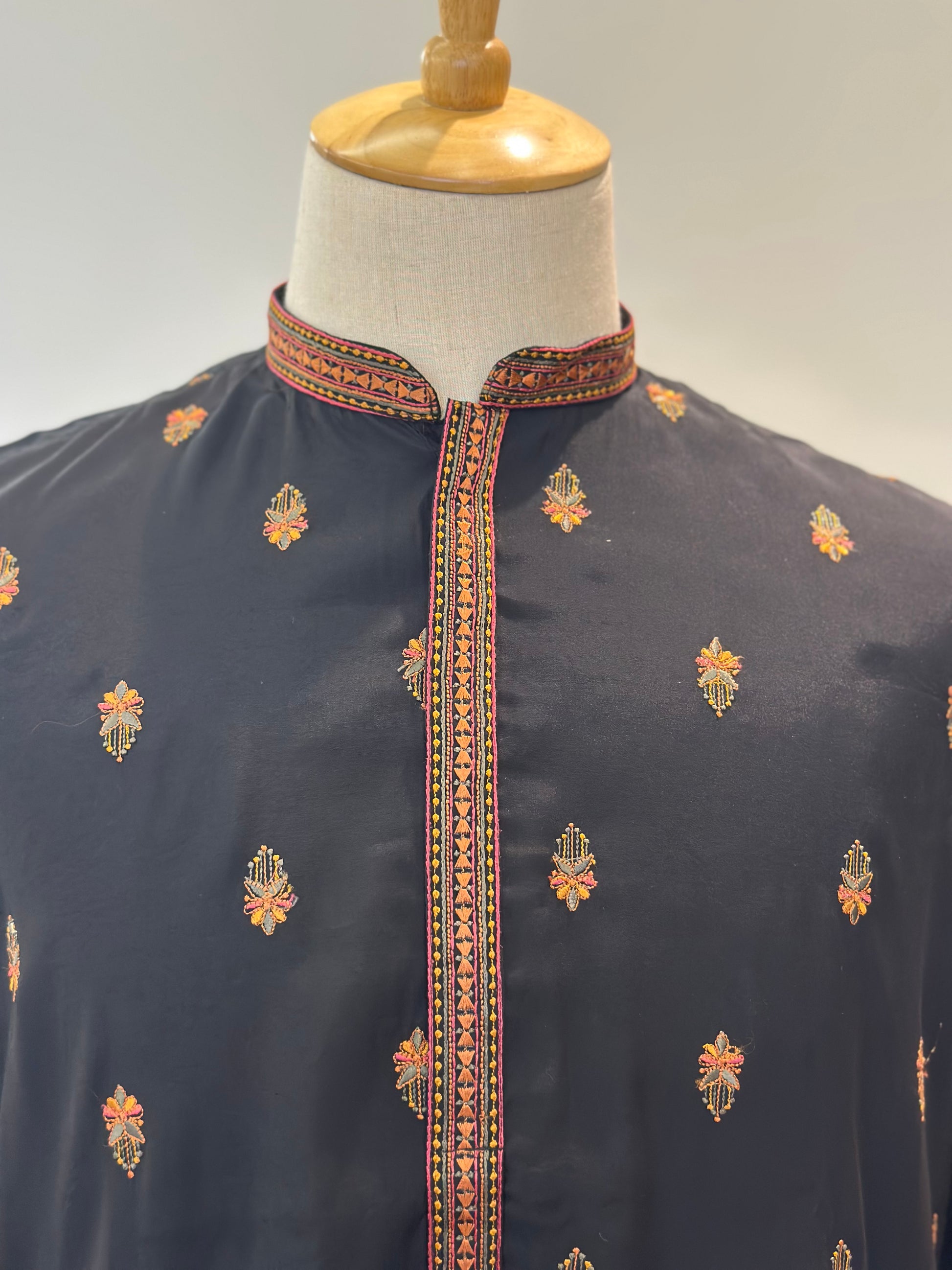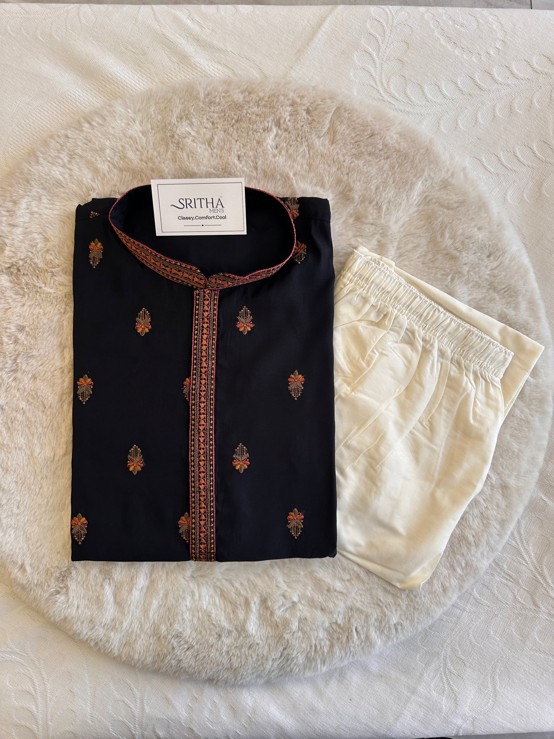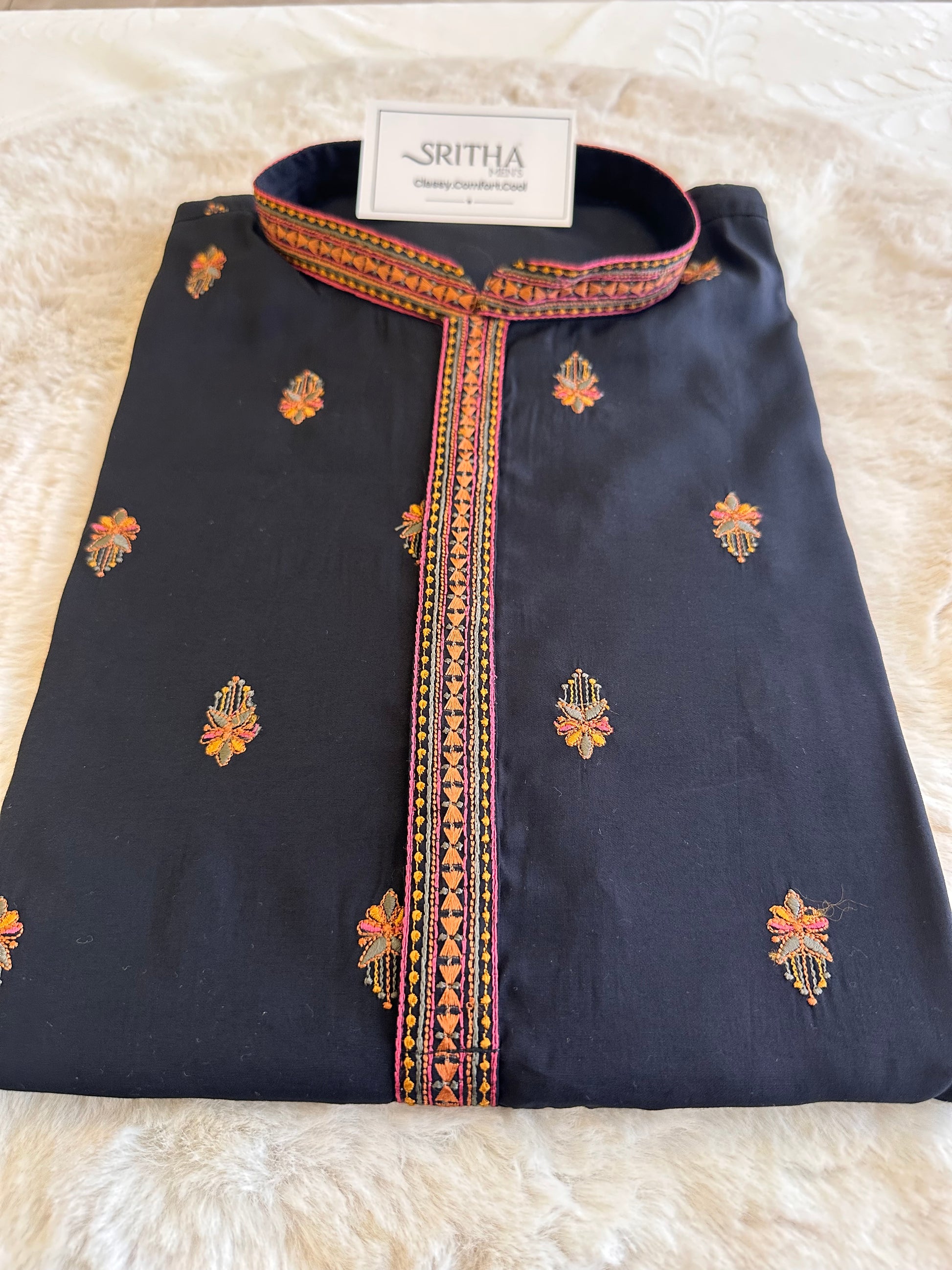 SM1125-06-05 Black Soft Silk & Colourful Embroidery Kurta Set