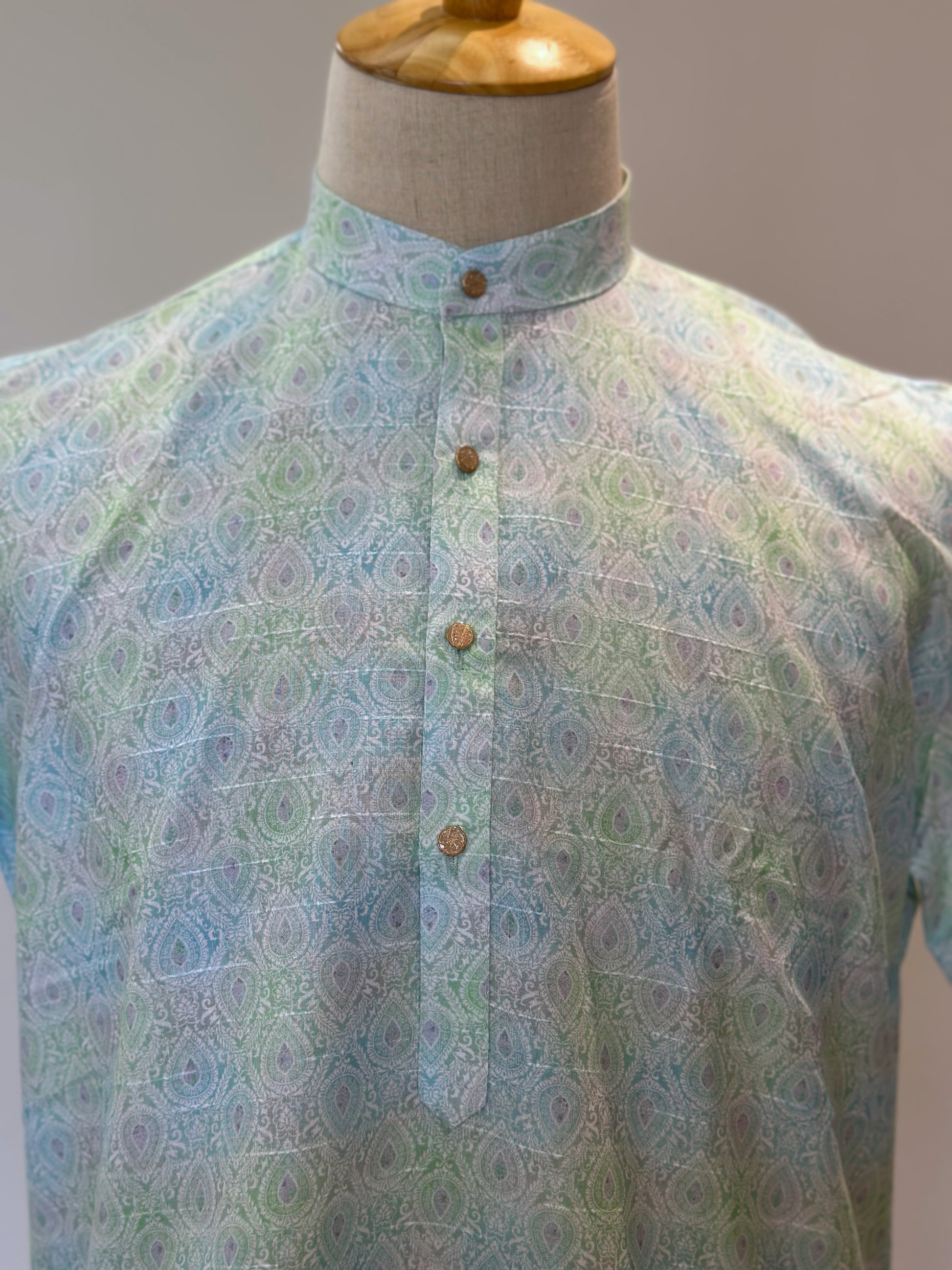 SM1224-01-13 Light Green & Blue Short Sleeve Kurta