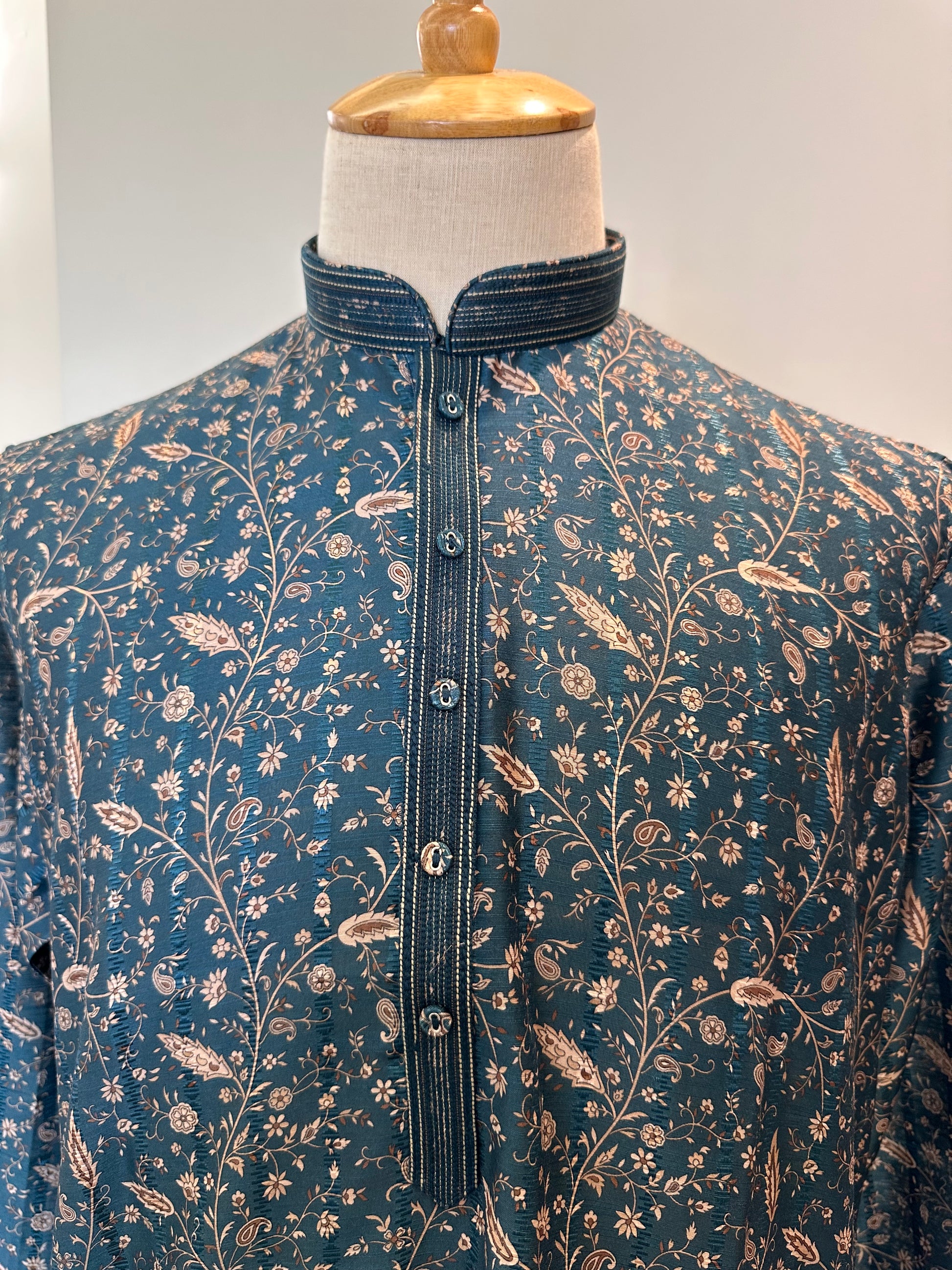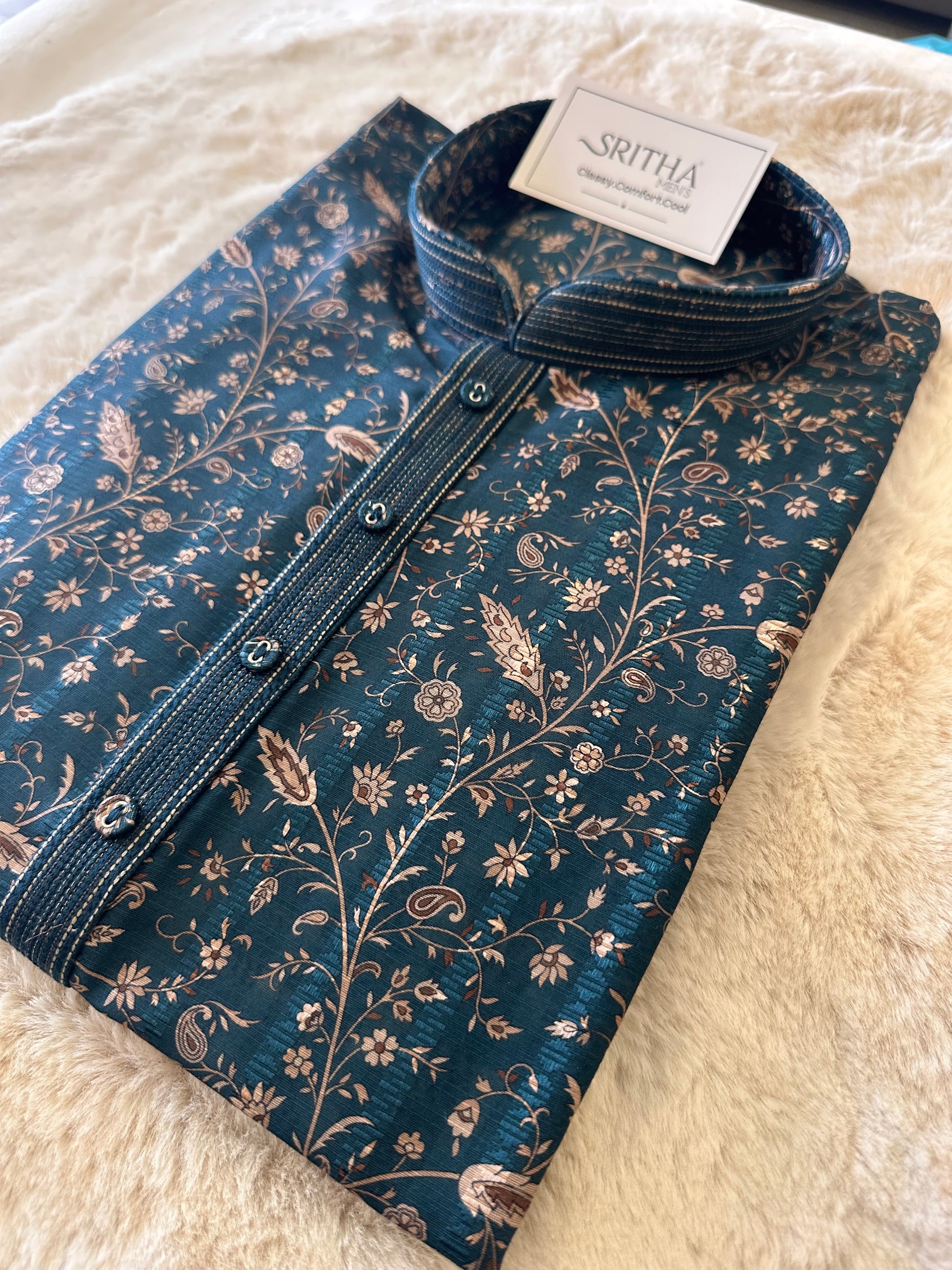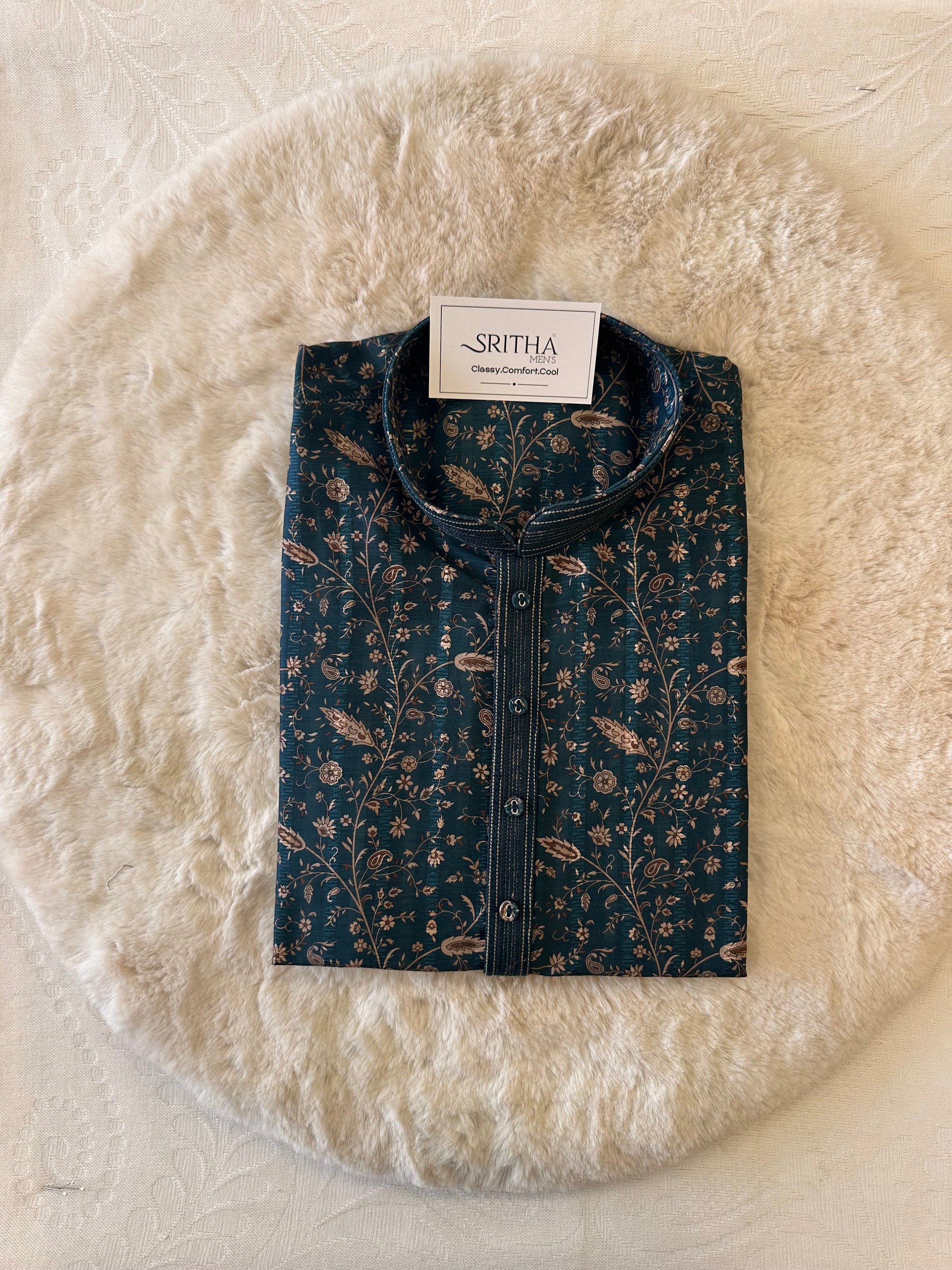SM1225-01-15 Dark Green & Gold Floral Soft Cotton Silk Kurta